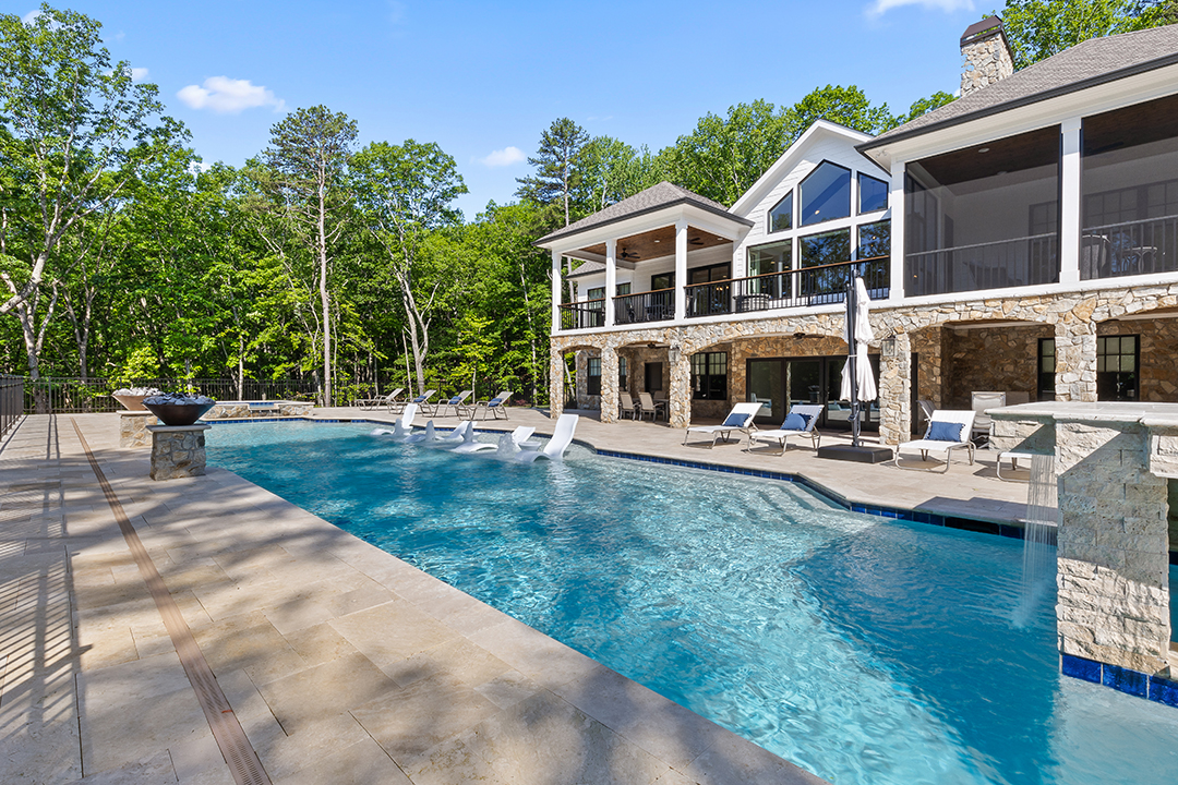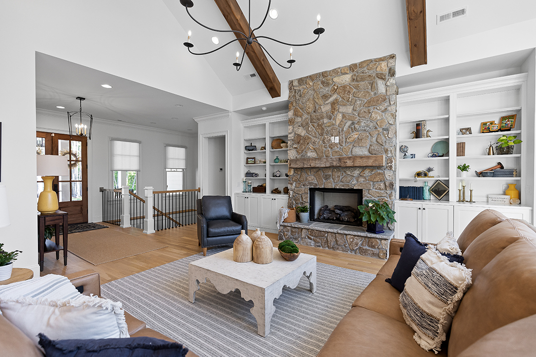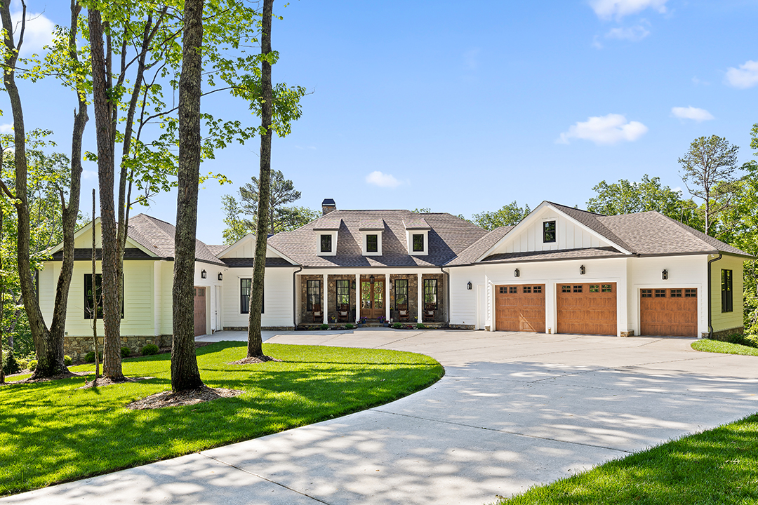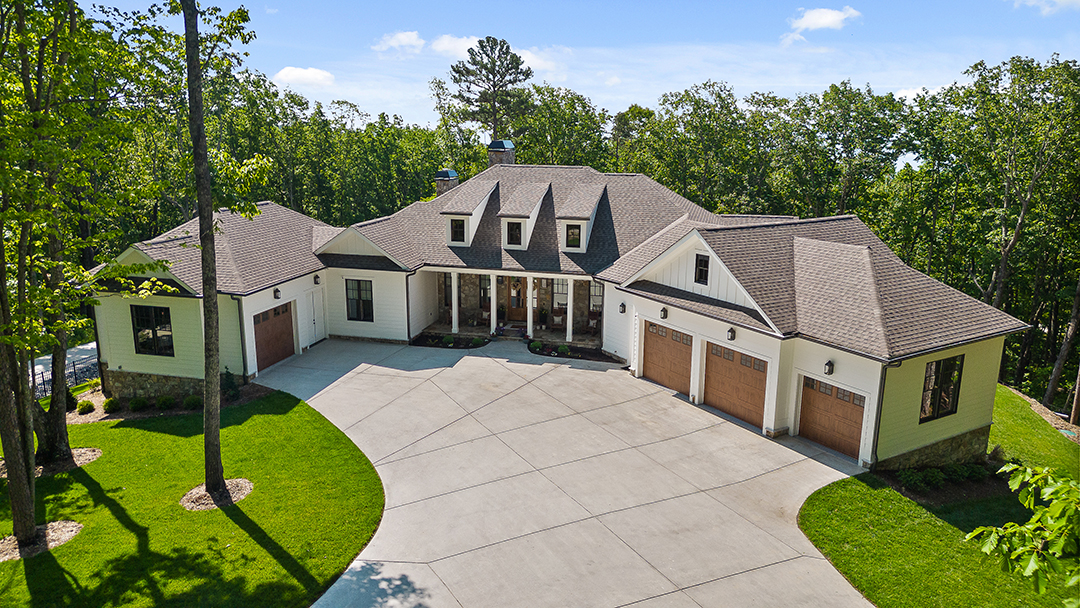 White Hardie lap siding cloaks the outside of this sprawling abode and is broken up by beautiful natural stone, with the entire façade exuding a feeling of class and timeless elegance.